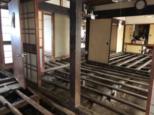 今回の床下作業は、床の高さがあまりなく、大人が入るのがやっと。