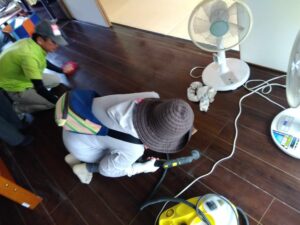仮床の設置や泥出し、倉庫の片付け、個別訪問などを行いました。