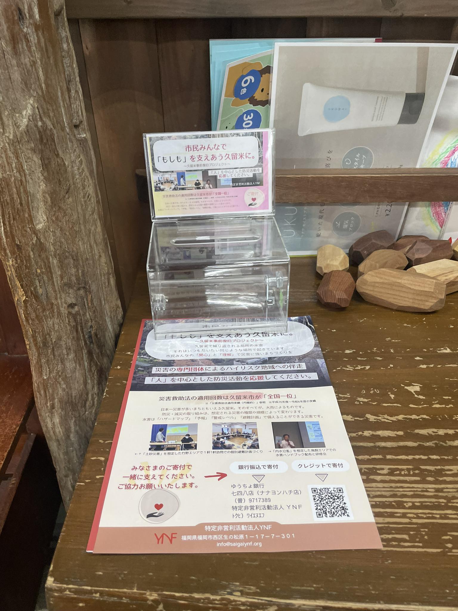 久留米のいくつかのお店にも募金箱を置かせていただいていますが、11月までに残り40万円を集めたいと考えております。