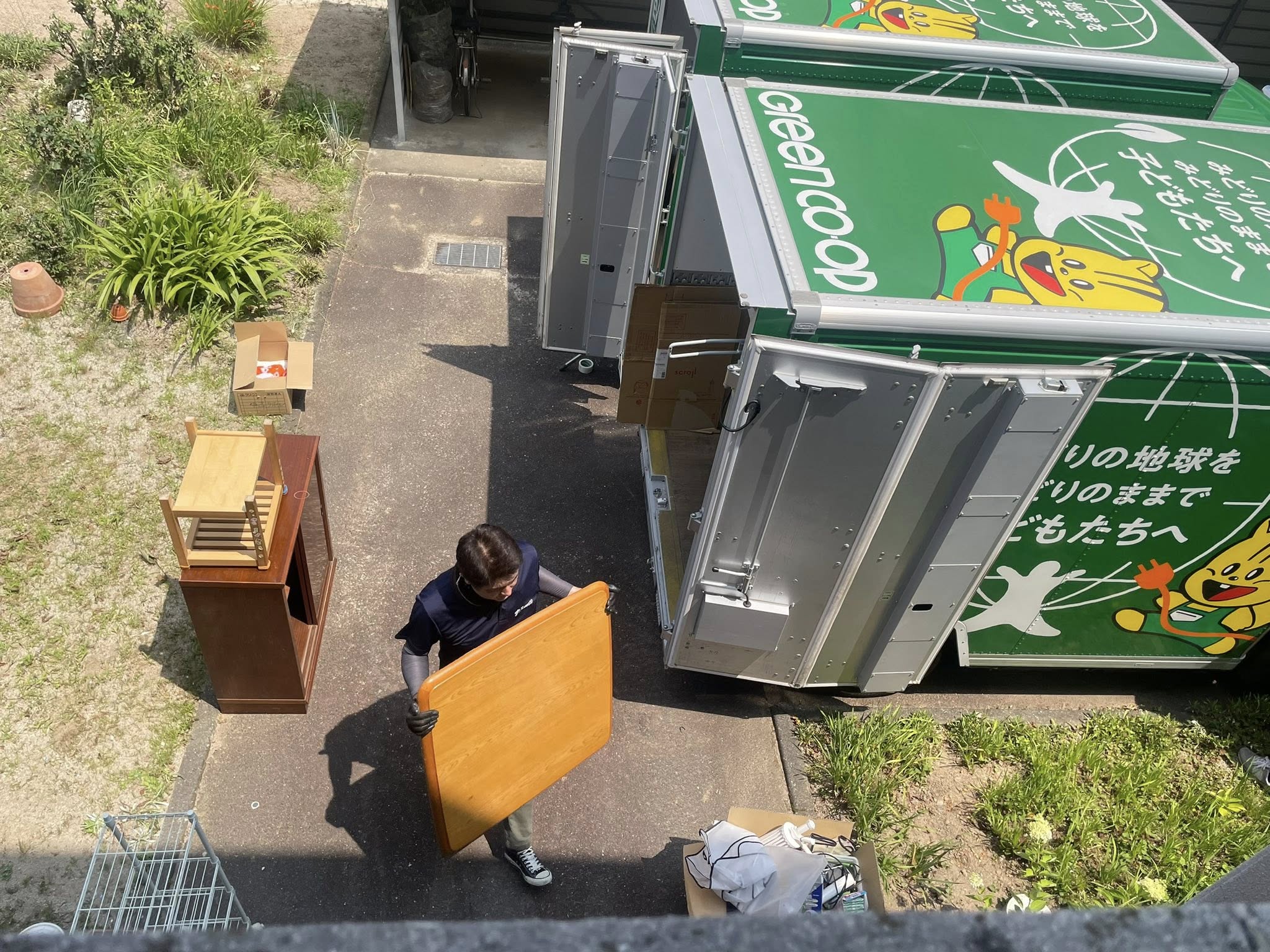 なかなかボランティアさんが集まらない中、トラックの手配や人員を集めて頂いたグリーンコープ生協ふくおかさま、九キ災さま、ほんとうにありがとうございました。