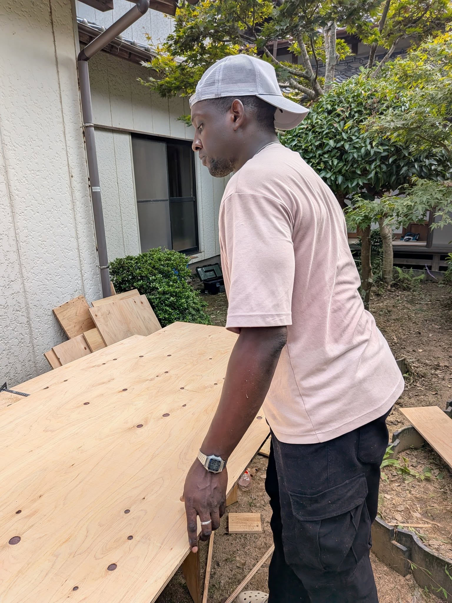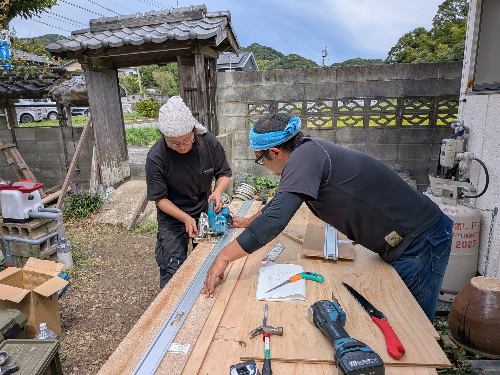 いつもお手伝いいただいてる福岡市現業労組さんからは丸ノコ作業が得意な用務員さん達も。